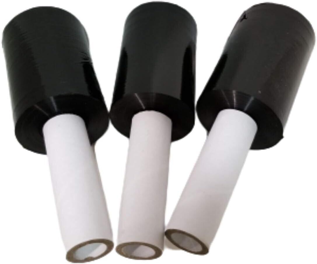 Black Shrink Wrap Stretch Film 3 Rolls 5"x1000 80 Gauge with handle
