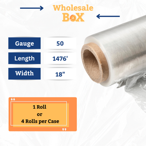 Pallet Stretch Film 18" x 1,500ft 50 Gauge Pallet Wrap Stretch Film Hand Shrink Wrap