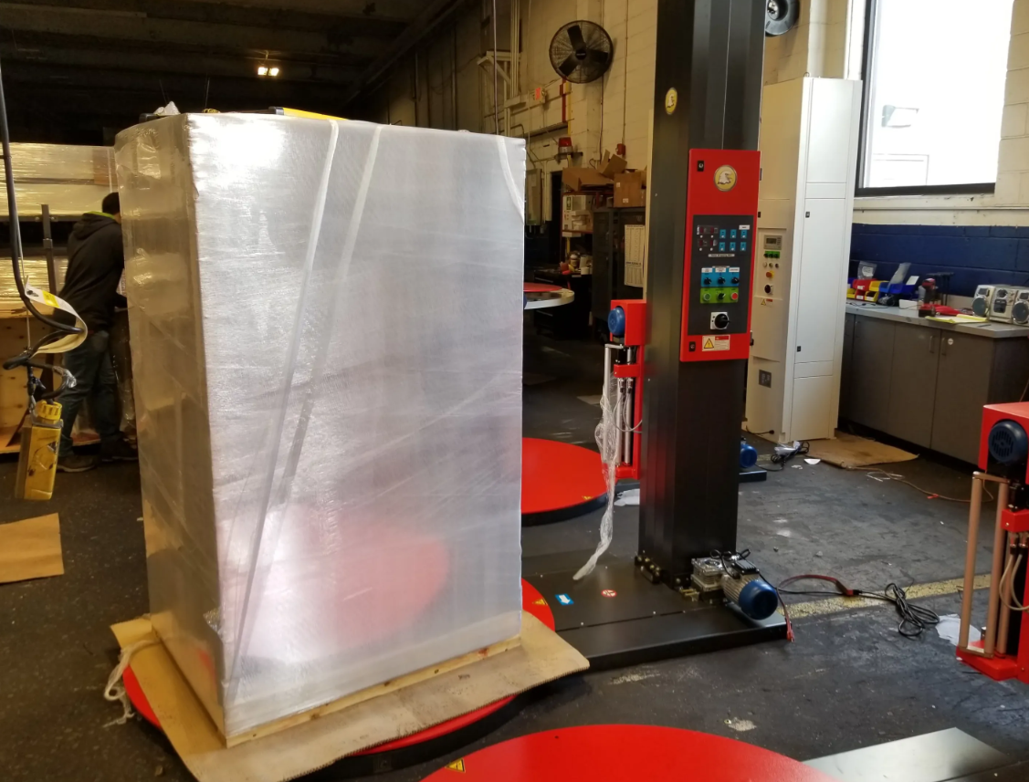 The Eagle 1000 series stretch wrappers feature a powered film carriage unit to maximize film efficiency. First a photoelectric sensor automatically recognizes the load height. Then the carriage travel will automatically adjust to create an effective wrap cycle. Additionally the turntable offers a soft start/soft stop feature for gentle handling. There upon completion of a job cycle, the turntable resets itself automatically. Therefore this allows for proper orientation of the load for pallet jack or forklift insertion. Even more available features offer increased production and a cost per load savings. Nevertheless, owning an Eagle 1000B series stretch wrapper just makes work life more efficient.