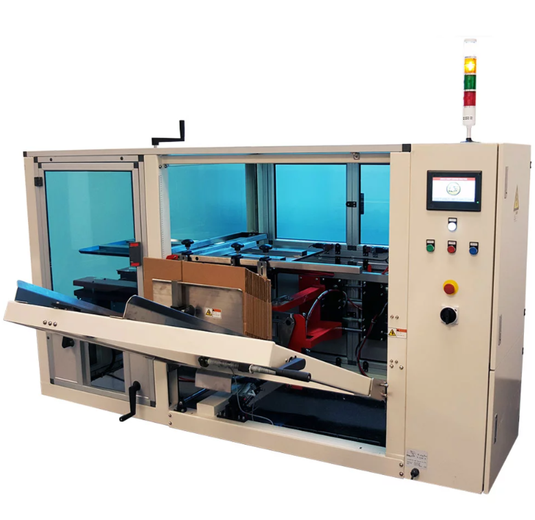From start to finish this carton erector constructs and seals the bottom of each carton in only 3 seconds! Rather than stopping your production, the vertical storage system allows the operator to load cartons. Also, the Eagle T20CF is suitable for various carton sizes. For example you can manually adjust carton sizes in under 2 minutes. In summary, these features provide for increased productivity.