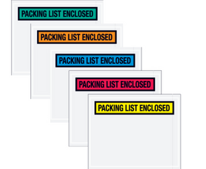 - Panel face, colored Packing List Envelopes are pre-printed with "Packing List Enclosed" on heavy 2 Mil poly.