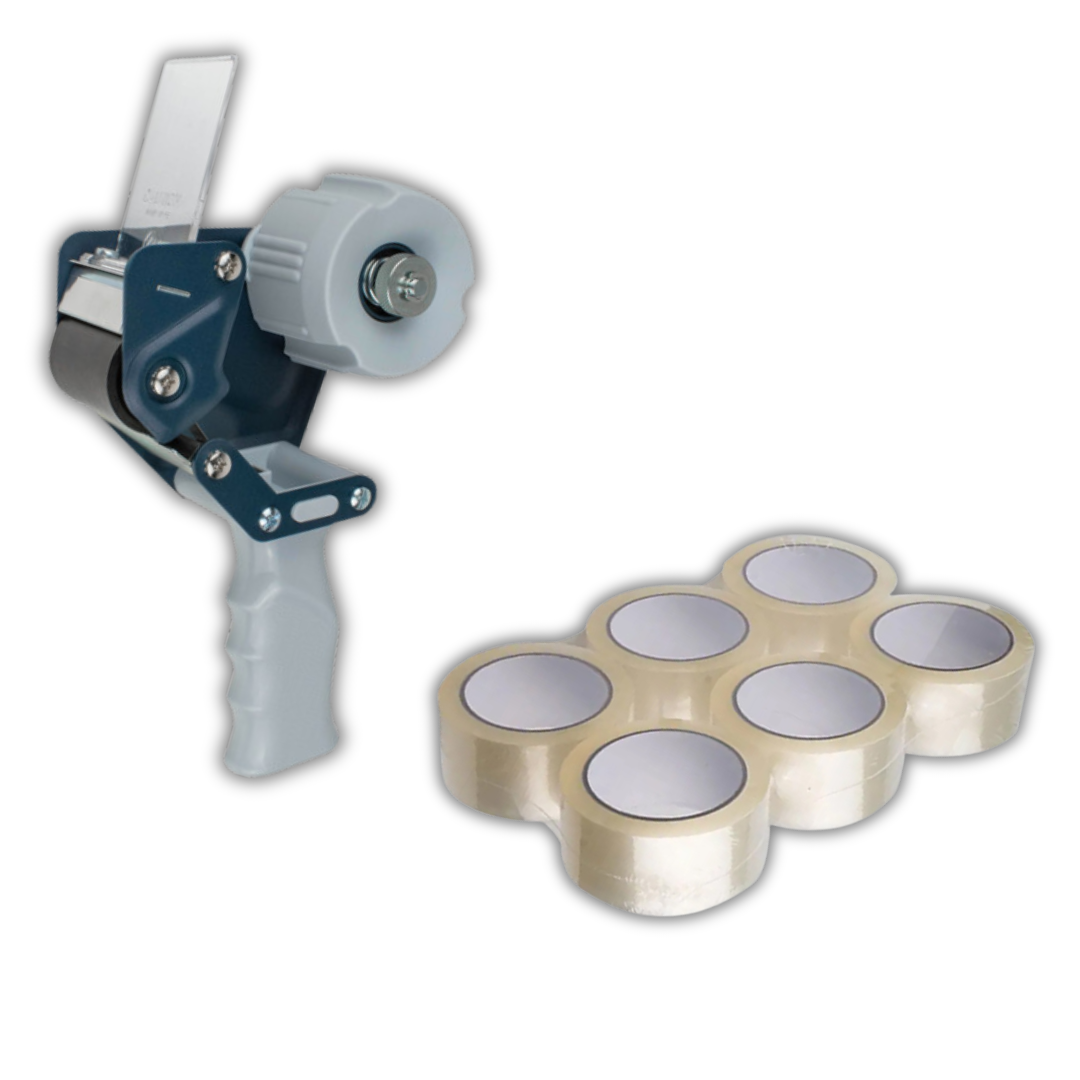 Heavy-Duty Packing Tape Dispenser – 2" Handheld Tool for Shipping & Moving (Includes 6 Rolls of Tape)